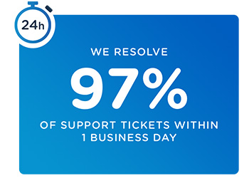 Our support system in place is quick and efficient, allowing us to resolve 97% of support tickets in 24 hours or less. Our VIP Infiniti support team ensures you are working with the same representatives on each request which provides faster turnarounds and less back and forth.